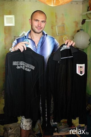 Рубашка Clockhouse. В этой рубашке я получал Золотого льва на фестивале рекламы «Каннские львы». Приз предназначался белорусскому рекламному агентству «Крынь» за инновации в сфере рекламы. Так получилось, что тогда я был единственным белорусом в зале, да и то забрел туда практически случайно после пляжа. Рубашка, конечно, уже «не выходит в свет», но в гардеробе до сих пор присутствует.