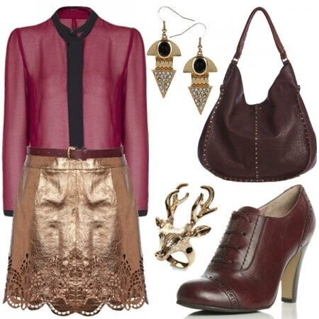 Подчеркнем, что теплый металлик лучше всего сочетать с макияжем нейтральных тонов: нежные бежевые, кофейные тона, или просто подведенные черным глаза будут выглядеть гармонично. О том, с чем еще можно сочетать модный цвет, читайте