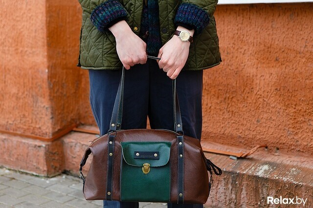 Дополняет образ саквояж от Жени Бычковского, о котором Леша говорит: «В сфере сумок это наше все».
