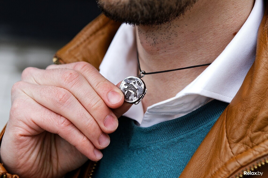 — Из аксессуаров на мне кулон в виде барабана с копьем, на котором изображена охота на бизона, и браслет ручной работы из многослойного черного стерлинг-серебра индейцев племени Хопи с клеймом мастера. Я купил его в Вайоминге (США) с первых заработанных денег и с тех пор ношу, не снимая, вот уже 14 лет. Этот браслет мне очень дорог, так что даже не могу представить, что когда-нибудь заменю его на часы.
