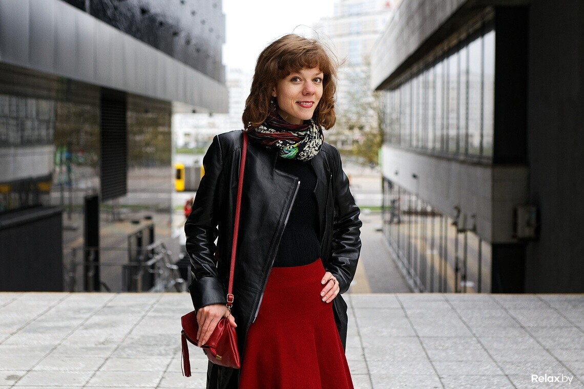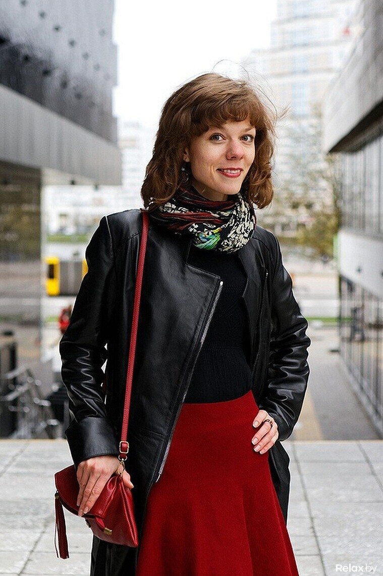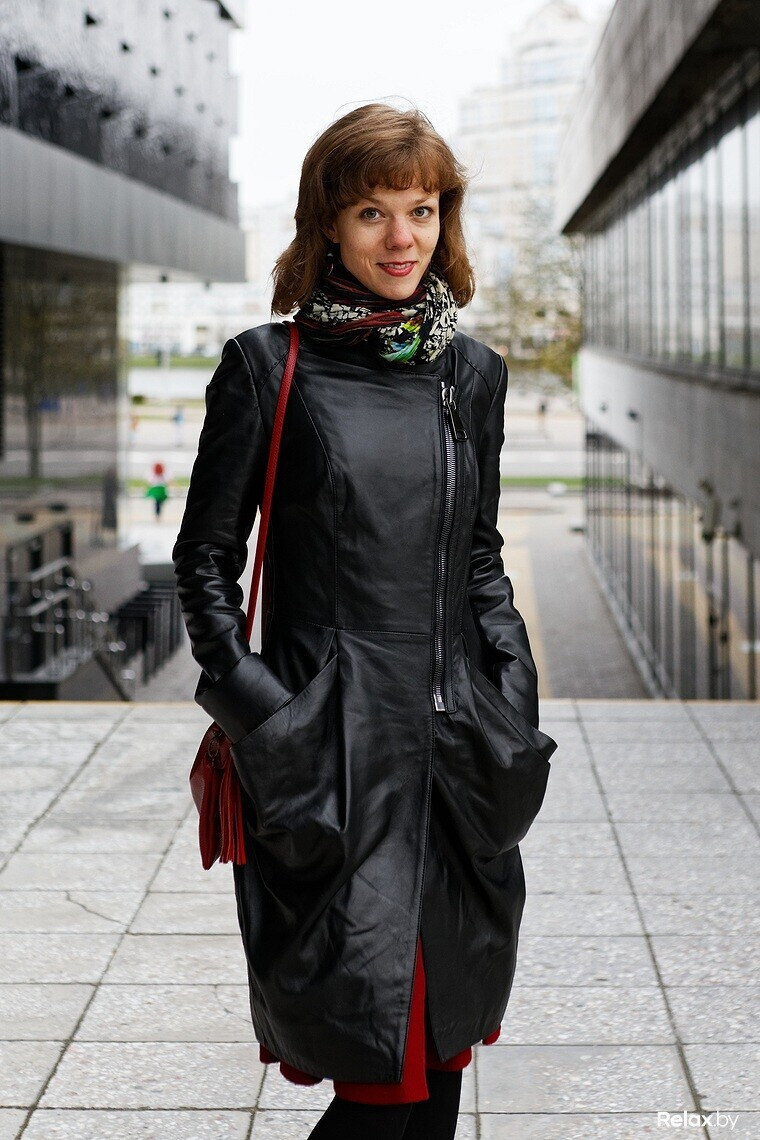 — Сегодня на мне кожаный плащ из новой коллекции Levinson, купленный прямо на фабрике производителя и привезенный на прошлой неделе из Стамбула, юбка из бутика брендовой одежды из Китая, шарф Desigual — подарок из Италии. Обувь — кожаные ботильоны совместного итальянско-белорусского бренда Donato Gianini — нашла в Минске. Сумку Particolari покупала в Италии, серебряный браслет с золотым напылением и черными сапфирами (со слов продавцов ювелирной лавки на Grand Bazar) — в Стамбуле.