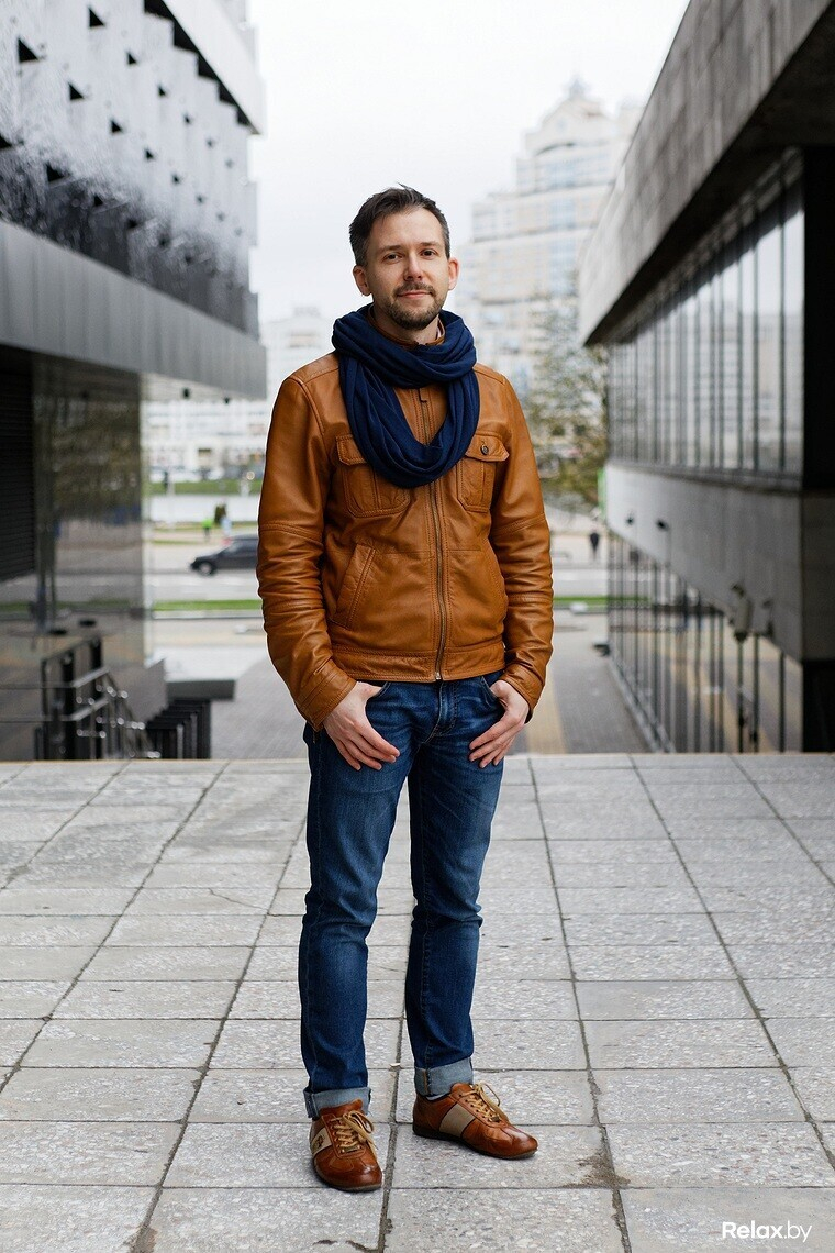— Сегодня на мне кожаная куртка Esprit, купленная в Барселоне лет 6 назад, рубашка и свитер литовских марок. Свитер зацепил цветом, а рубашки для меня — базовый предмет гардероба, поэтому считаю, что их должно быть много. Джинсы — Levi’s 511, шарф — подарок, когда-то давно привезенный из Италии. До сих пор ношу его с теплом и удовольствием. Вообще, очень люблю подаренные вещи. Мне, правда, сложно угодить, но если это все-таки случается, то потом приятно вспоминать и ассоциировать вещь с человеком или определенной эмоцией.