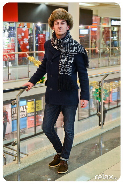 Одежда: шапка из волка, шарф - Colins, пальто - LTB, джинсы - Mustang.