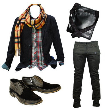 Мужчины в моде могут наслаждаться свободой. Главное правило — умелое сочетание цветов. Сдержанность украшает парней. Но разнообразить ее можно хорошей клеткой и ярким шарфом, тоже в клетку. Сочетание двух вещей разной по размеру и цветовой гамме клетки сделает образ более интересным. Брюки болотного цвета поддержат отдин из оттенков. Просто и мужественно.