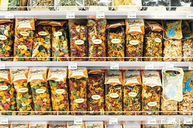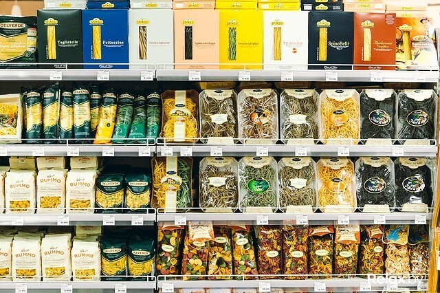 Наконец-то мы возвращаемся к полкам с итальянской пастой. Разнообразие поражает: здесь представлены невообразимой длины и формы макаронные изделия разных цветов — от ярко желтого до черного.