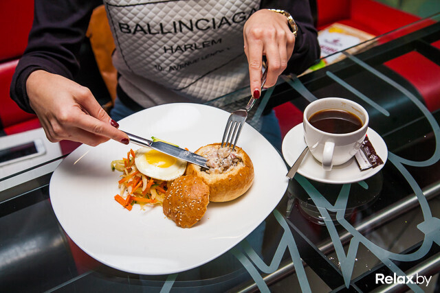 10:15 (время заказа). Завтраки здесь актуальны до 12:00. Из всей сети мы выбрали заведение в «Столице», благодаря максимально удобному расположению. Минус разве что в том, что торговый центр работает с 10:00, поэтому забежать сюда на завтрак перед работой получится далеко не у всех. Это кафе открылось относительно недавно, поэтому атмосфера, на наш взгляд, здесь позитивная, более драйвовая. Стоит отметить удобную зону для ожидания кофе навынос.