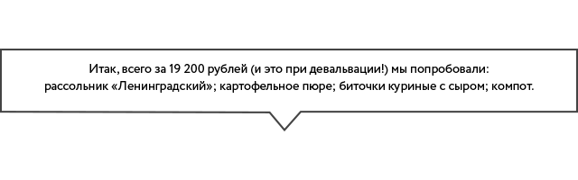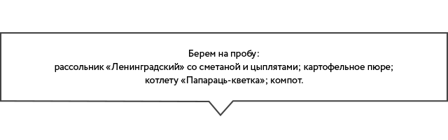 На входе нас встречают поварихи, шутливо предлагая вкусить котлет с мухоморами. Параллельно пытаются устроить личную жизнь, флиртуя с офисными сотрудниками и приезжими студентами. В колонках звучат хиты 1990-х, кассирша пробивает чеки в такт небезызвестной мелодии о сигаретах с ментолом.