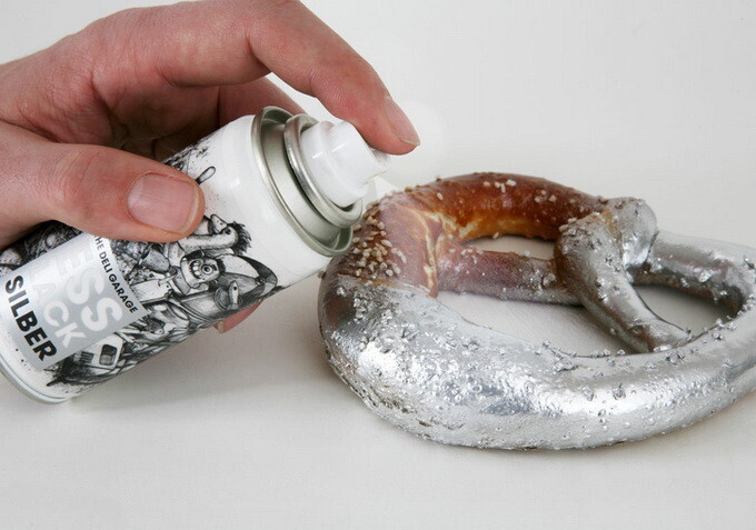 И золотая курочка, и серебряное яблочко, и разноцветные печенюшки. Все это теперь не просто реально, а еще и съедобно. Благодаря Food Finish и The Deli Garage, которые придумали волшебные спреи для еды. Они сделаны из пищевых красителей, абсолютно безопасны, не имеет запаха и вкуса. Так что можете поражать своих гостей кулинарными изысками и изумительным оформлением.