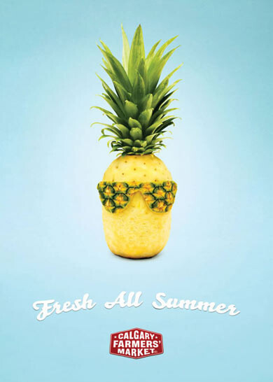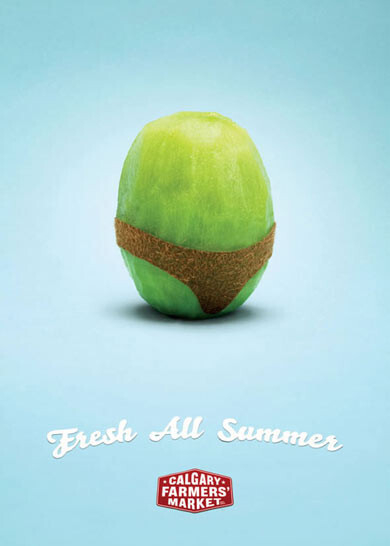«Всегда в хорошей форме» - модные овощи и фрукты не просто фантазия, а очень оригинальная рекламная компания для фермеров города Калгари от агентства WAX. Веселая фотосессия была сделана как для летнего, так и для зимнего сезонов. Не обратить внимания на эти забавные плакаты невозможно. А когда людям хочется улыбнуться, глядя на товар, это почти наверняка значит то, что им захочется его приобрести.