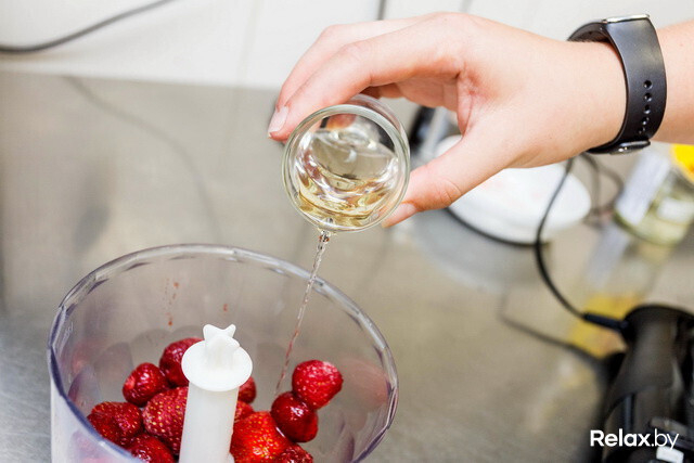 на ул. Зыбицкой, 9. Стоит удовольствие относительно недорого — 70 000 рублей. Это авторский рецепт шеф-повара Ольги Прыгаровой, поэтому такое сочетание попробовать можно только здесь: «В летнее меню хотелось добавить что-то свежее, но небанальное. И клубника с ромом, согласитесь, вполне себе игривая пара».