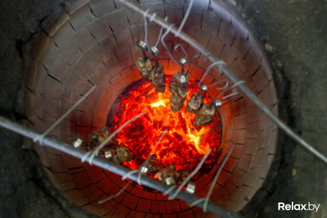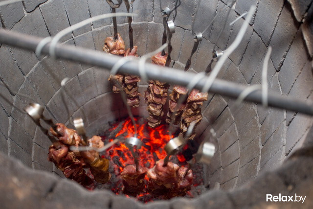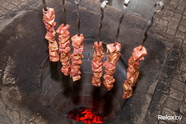 Если готовить в тандыре, где шампуры расположены вертикально, то жир стекает по ним на угли и мясо получается равномерно прожаренным. Relax.by узнал, что попробовать настоящий шашлык в тандыре можно только в ресторане армянской кухни «Эриван». Цена за 100 граммов шашлыка из свиной шеи — 62 700 рублей, что, в общем-то, довольно бюджетно.