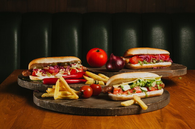 Меню стрит-фуда разделили на три части: новые бургеры (каждый можно дополнить гарниром), хот-доги, которые подаются с картошкой фри, и буррито с курицей или говядиной.