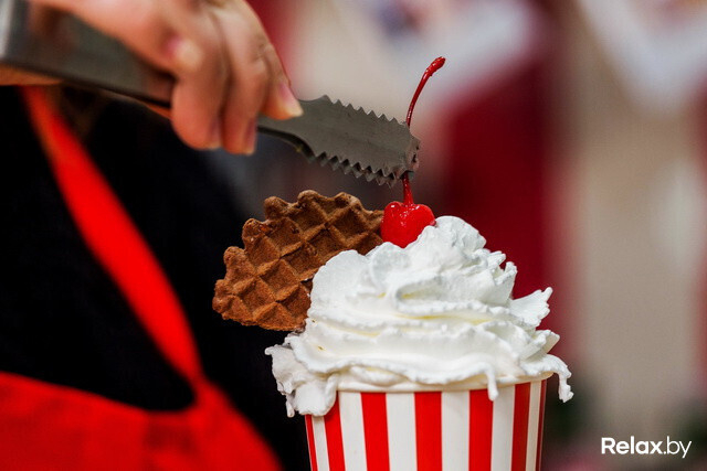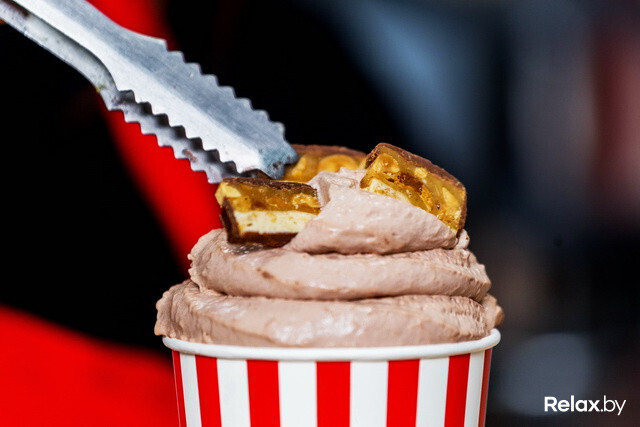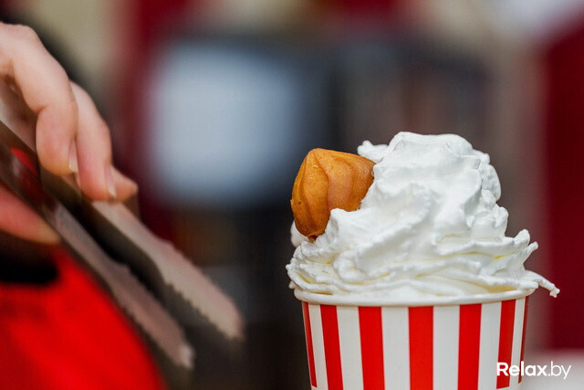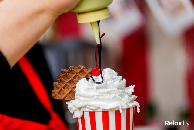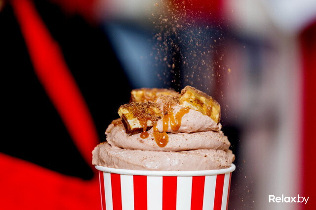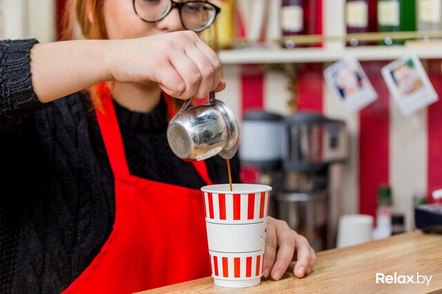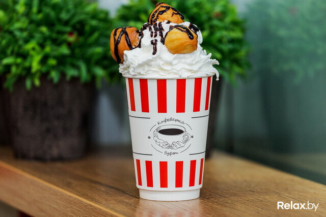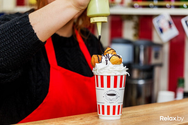 В «Кофеварке» в Зеленом луге продолжают готовить нестандартные напитки — кофе и десерт в одном стакане. «Роял Капучино» может быть со вкусом бананового сплита, вишневого чизкейка, медовика, шоколадного батончика, французских профитролей, тирамису или фисташкового семифредо.