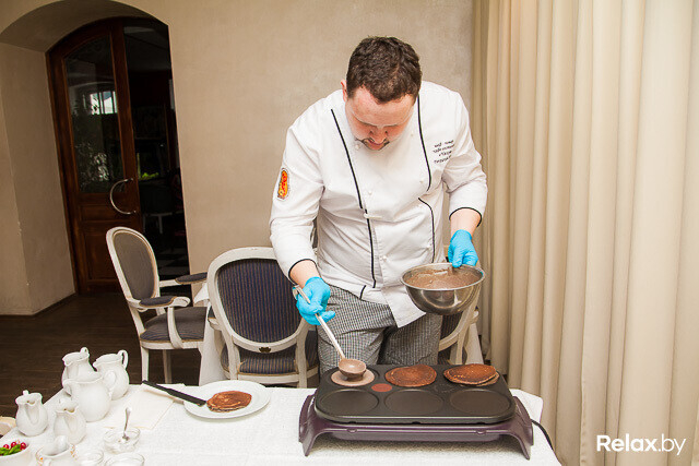 В преддверии Масленицы relax.by решил выяснить, как встретить праздник не просто традиционно, но и изысканно. С шеф-поваром кафе-гостиной «Чехов» Артемом Ракецким печем блины-панкейки из черемуховой муки, а дополняем сырно-творожным кремом, медом, красной смородиной и домашним вареньем.