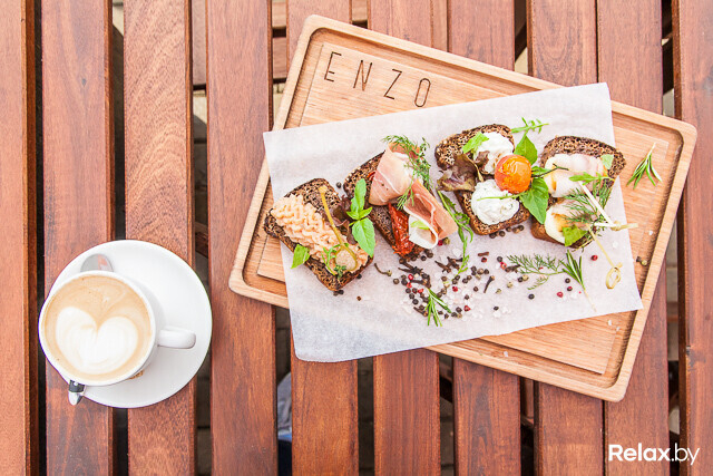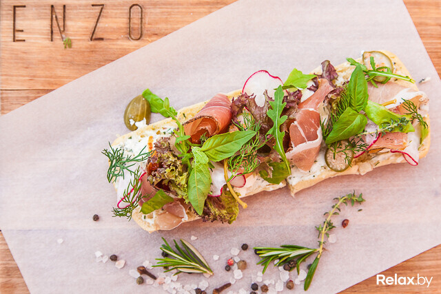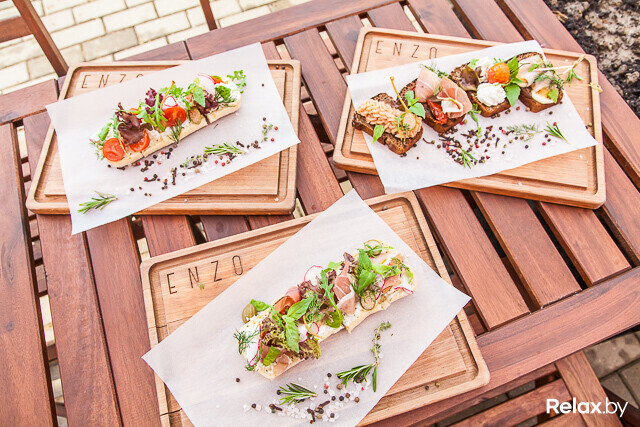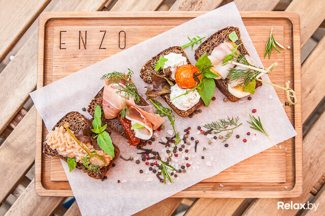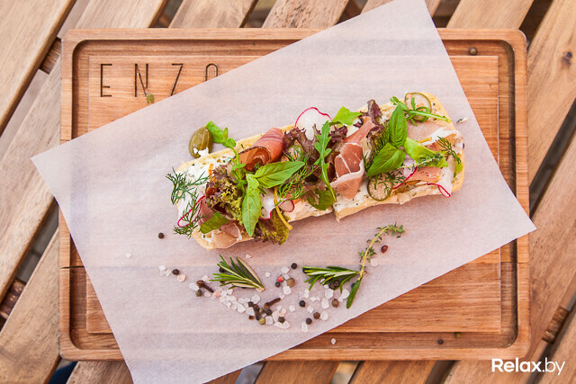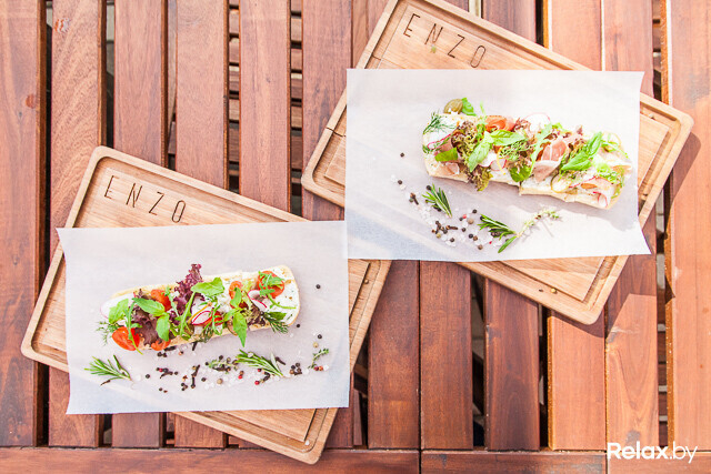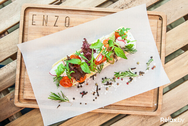 На светлой террасе, которая может вместить 25 гостей, установлен отдельный бар. Вин в ассортименте много, из разных уголков Земли: из Испании, Италии, Франции, Чили, Аргентины и Португалии. Сейчас карта слегка расширилась; следующие шаги в ENZO сделают уже вместе с профессиональным сомелье.