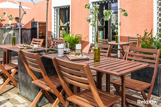 на Октябрьской, 23 открывалась каждый год, однако всегда была лишь продолжением заведения. Формат изменился: террасу с деревянной мебелью, белоснежными навесами и цветами в бутылках сделали открытой, дополнили зеленью, разработали для нее отдельное винное меню и уже ждут первых откликов.