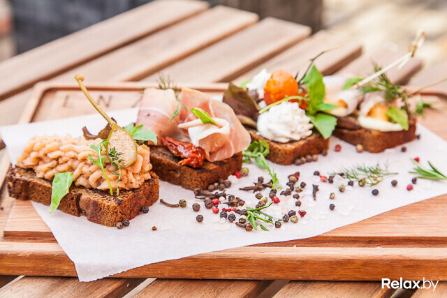 К разработке винных закусок подошли просто, но ответственно: изучили возможности, узнали предпочтения гостей и реализовали самые популярные: например, брускетты с классическим, понятным сочетанием ингредиентов.