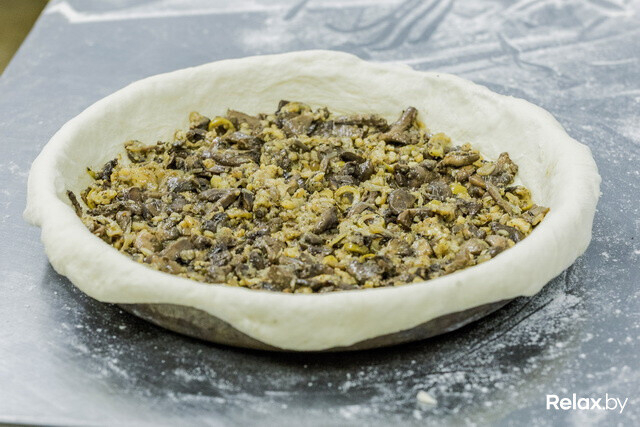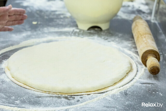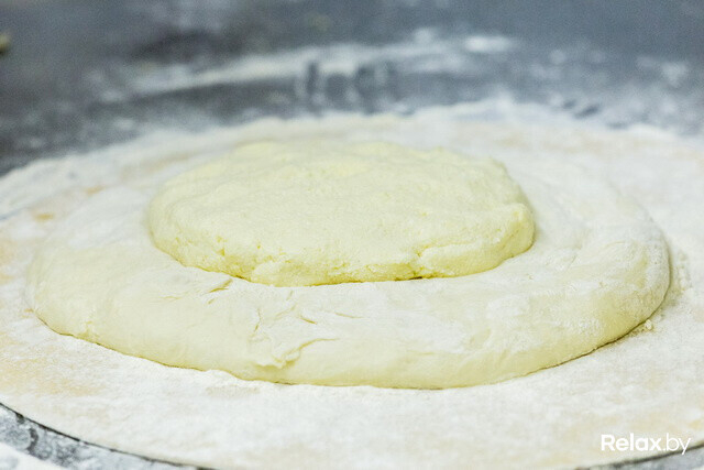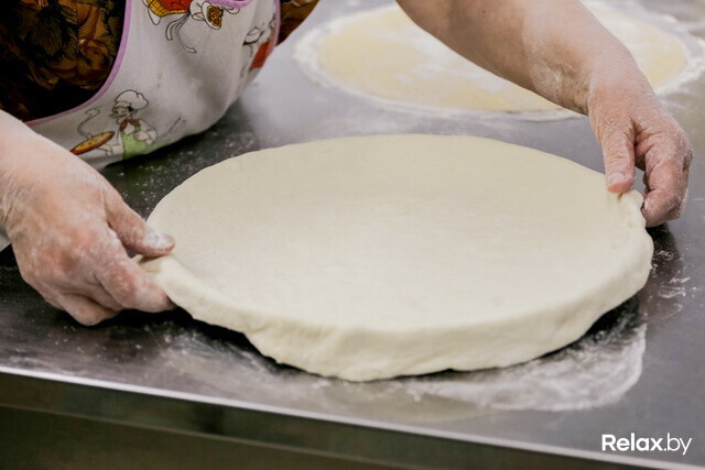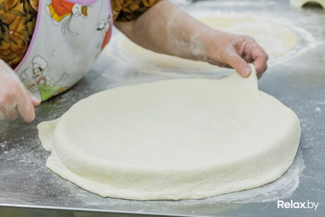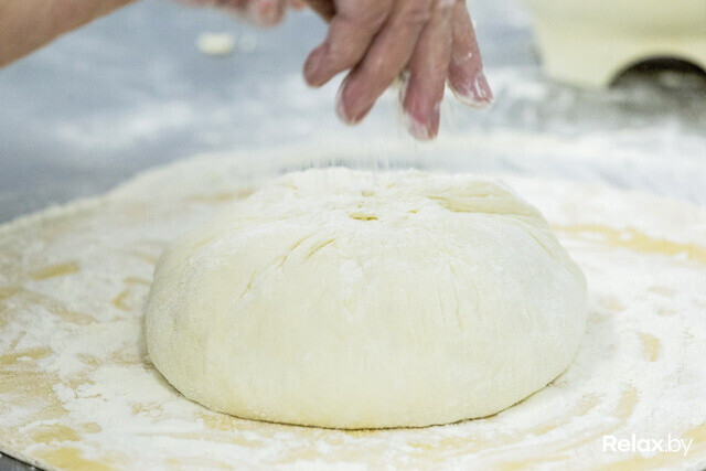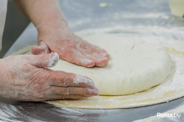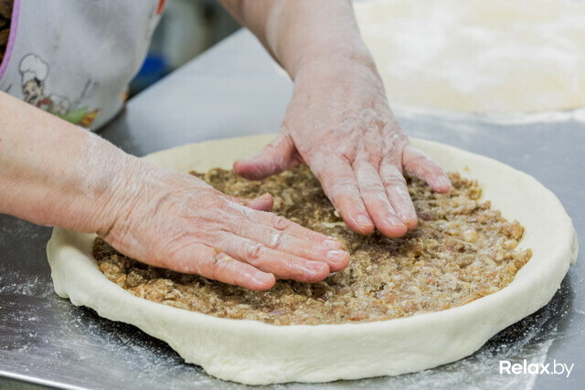 — Тесто мы замешиваем вручную небольшими партиями по несколько раз в день — в зависимости от количества заказов, — рассказывает Зураб Казбекович. — Cоотношение ингредиентов у каждой хозяйки свое — вот и у нас свое. Объяснить, какой должна быть консистенция теста, невозможно. Это надо чувствовать руками! Одно можно сказать точно: тесто должно быть достаточно мягким, чтобы начинка распределялась равномерно, и при этом достаточно плотным и эластичным, чтобы пирог не порвался.