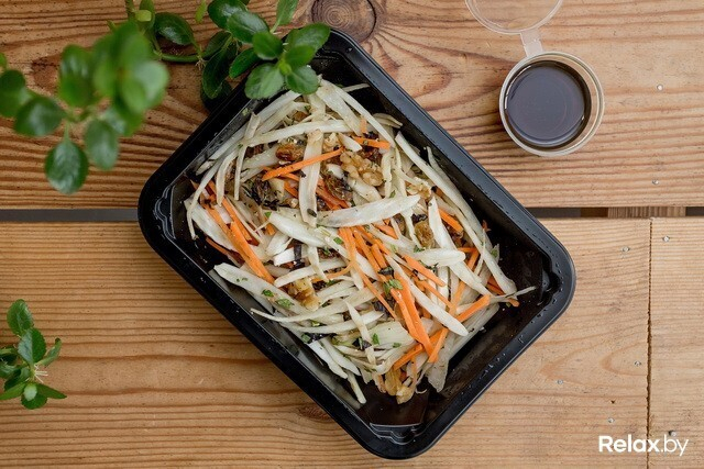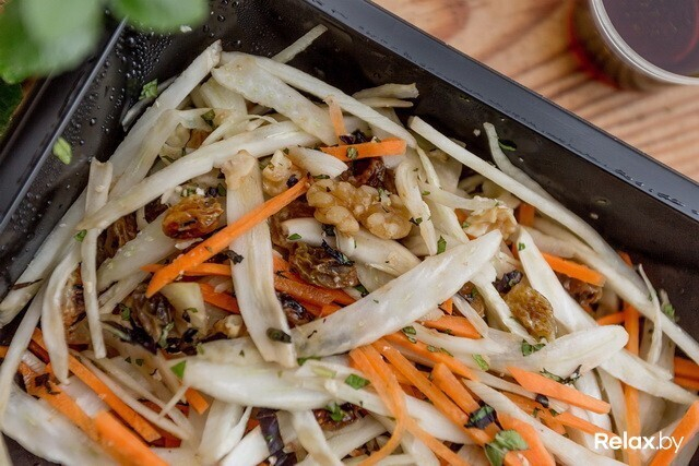 Салат из фенхеля с грецкими орехами (корень фенхеля, изюм, грецкий орех, морковь, свежий базилик, мята) — 288 ккал