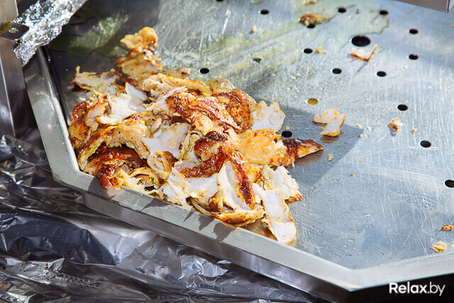 Если посчитать, сколько курицы идет на приготовление конкретно шаурмы, то из двадцати килограммов филе остается около тринадцати килограммов, пригодных для качественного блюда.