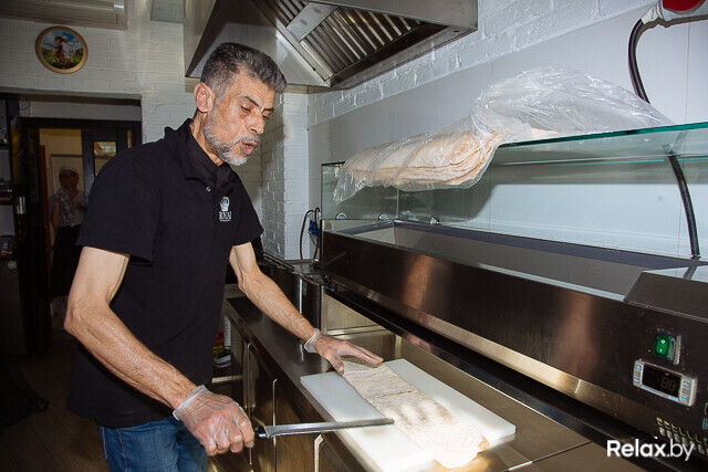 Восток — дело тонкое. Но еще более изысканная вещь — это кухня Востока. В одиночку с этой кулинарной культурой вряд ли разберешься. А именно поэтому мы напросились «в ученики» к шеф-повару Ихабу Джахджаху. С первых минут общения стало понятно, что наш маэстро просто влюблен в свою профессию. Про технику приготовления блюд он может говорить часами. А так как мы пришли в гости в день его рождения, то он даже приоткрыл секретные рецепты своих соусов, которые и делают его авторскую шаурму незабываемой.