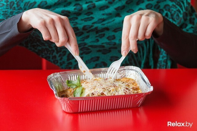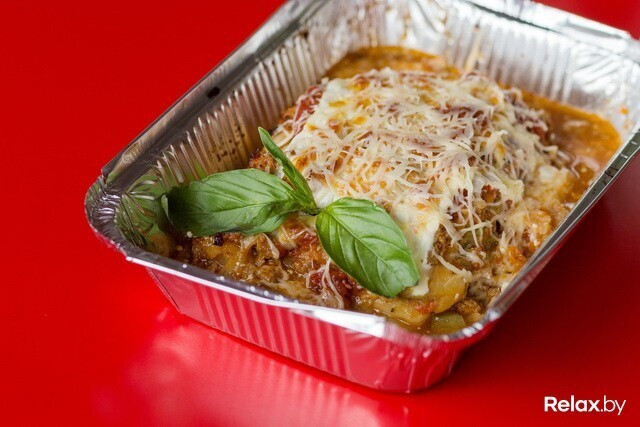 Лазанья — одно из самых сложных блюд для фотографирования и одно из самых вкусных для живота. Вес одной порции этого блюда в доставке «Три повара» составляет 350 гр, а привозят ее (впрочем, как и остальные позиции) в индивидуальной экоупаковке.