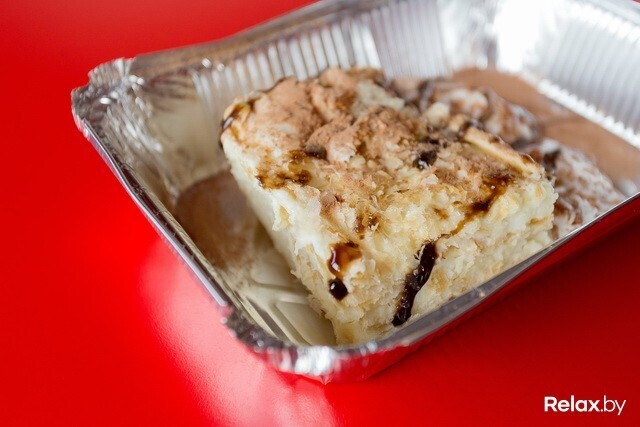На выходе порция «Наполеона» получается весом в 185 гр, поэтому смело можно заказывать один кусочек на двоих. Ну а по вкусу он вас точно не разочарует — нежное слоеное тесто со свежей начинкой, да с чашечкой кофе…