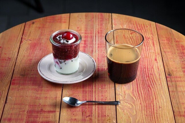 1. Черный лесной кофе (эспрессо с темным шоколадом, вишневым соком и воздушными сливками)