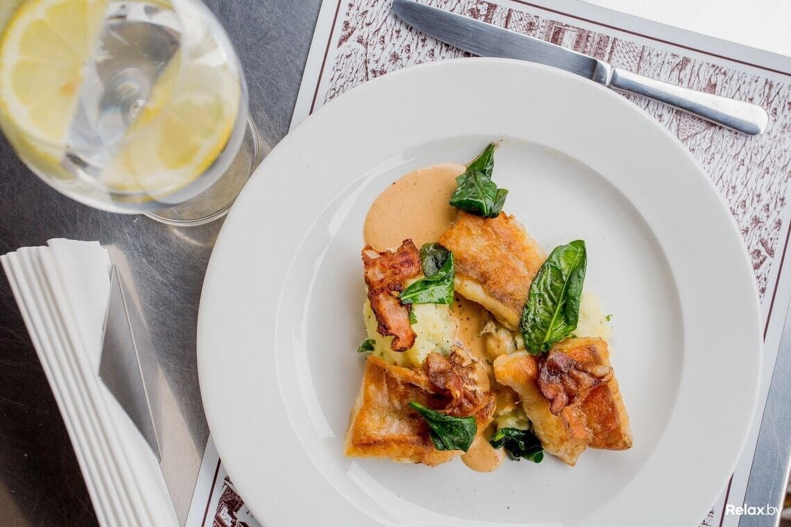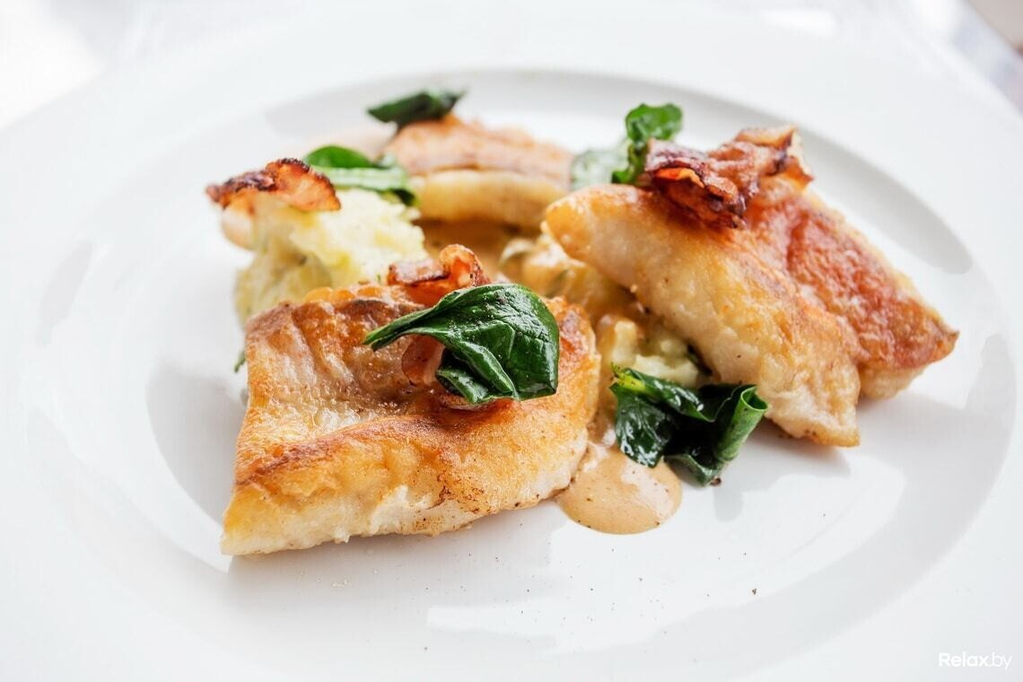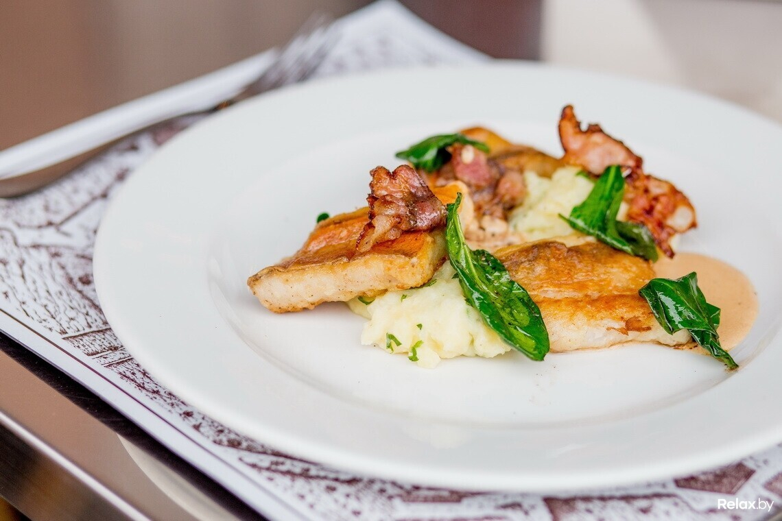 Морской окунь с биском и толченым картофелем; стоимость — 25 рублей