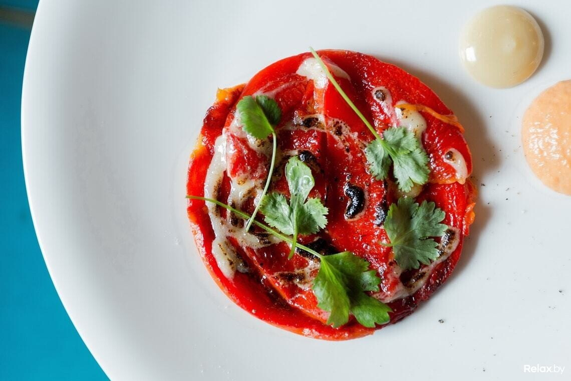 Обожженные перцы с соусом Рамеско; стоимость — 12 рублей