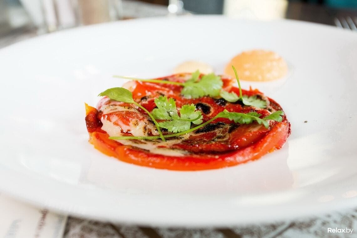 Подумали обо всех: мясоедам рекомендуют попробовать говядину с соусом из кваса и картофельным пюре, вегетарианцам — обожженные перцы с соусом Ромеско, ценителям настоящей итальянской пасты — черные тальятелле с креветками и печеными томатами, а сладкоежкам — яблочный кекс с йогуртом и соленой карамелью.