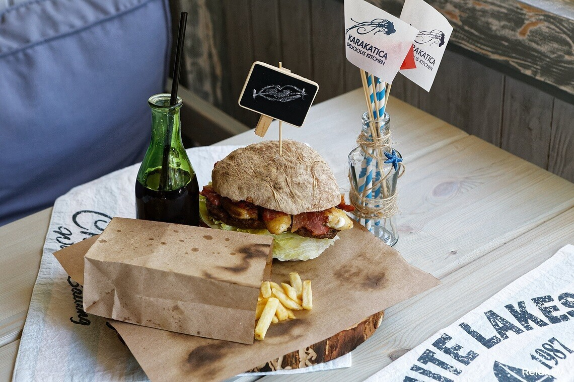 В кафе «Каракатица» в Ждановичах появилось отдельное меню для велосипедистов и байкеров. В основе сетов — бургеры с различными гарнирами и напитками. Бургеры приготовлены на основе выпечки собственного производства по авторским рецептам шеф-повара, как и соусы, которые идут в их состав.