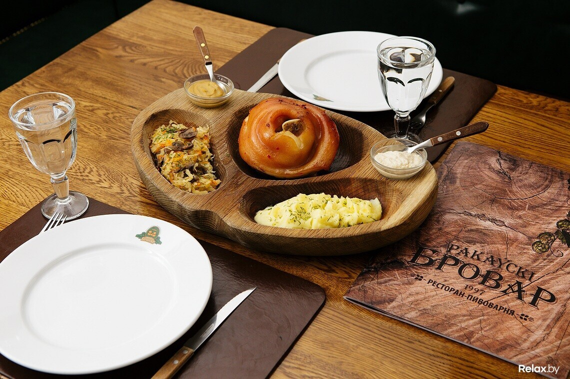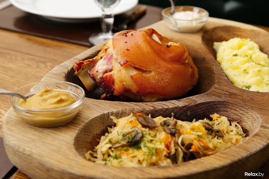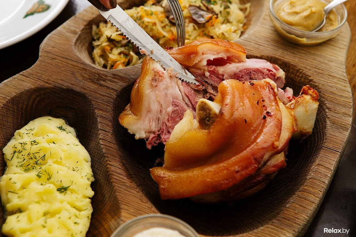 Попробовать запеченную свиную рульку с гарниром можно в пивном ресторане «Раковский бровар» по адресу: ул. Витебская, 10. Заведение работает ежедневно с 12:00.