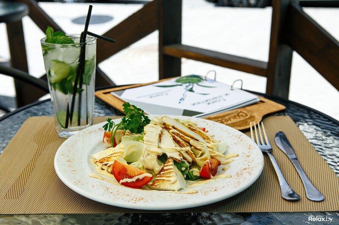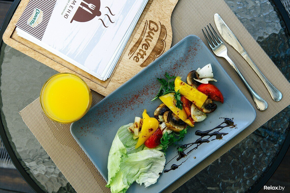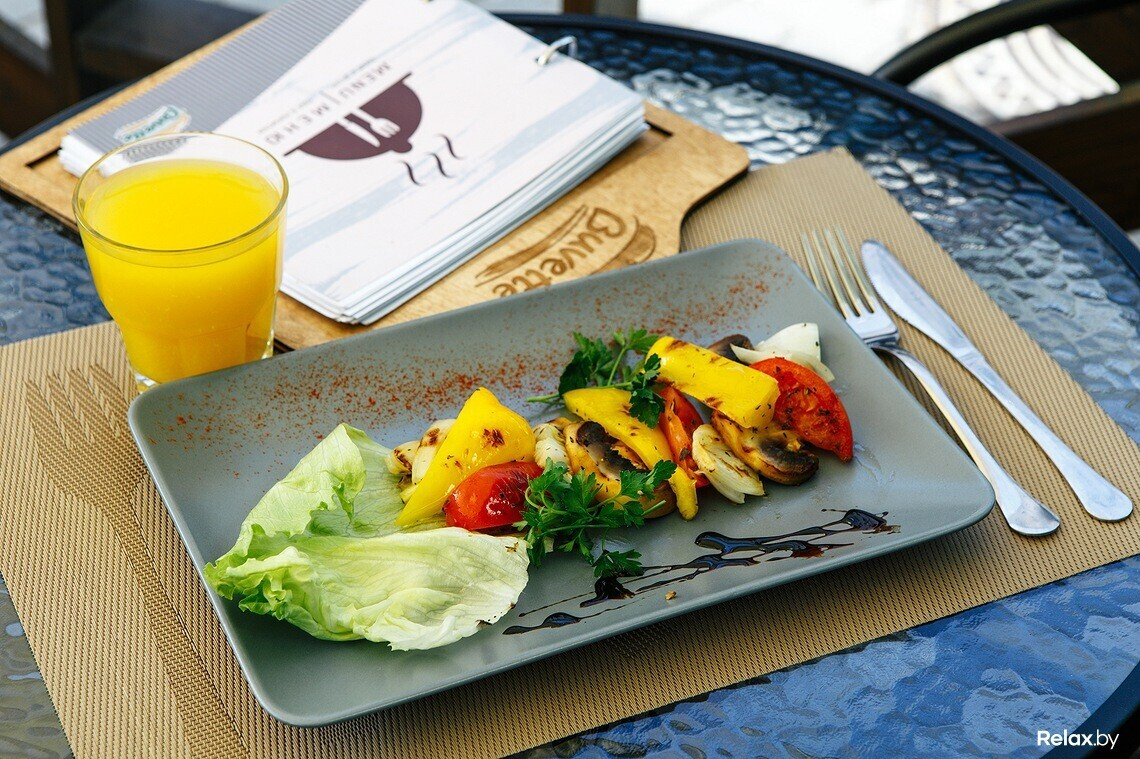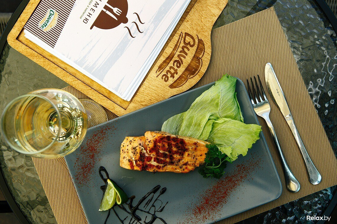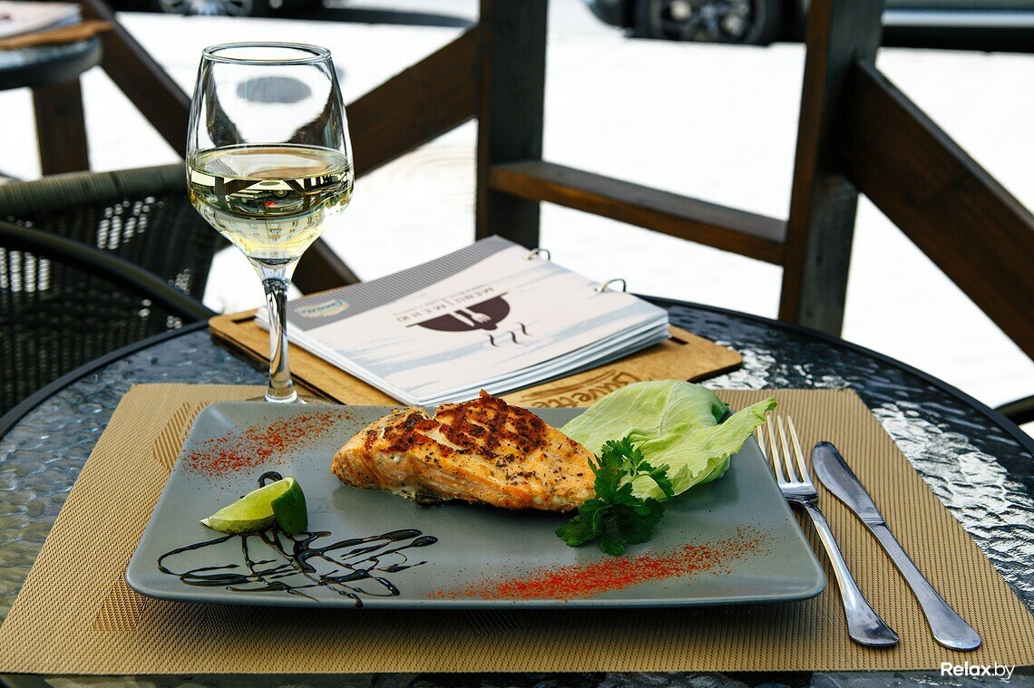В гриль-меню найдутся стейк из говядины или свинины, а также семга и овощи, приготовленные на гриле.