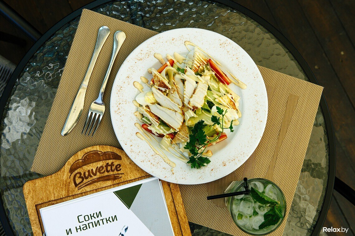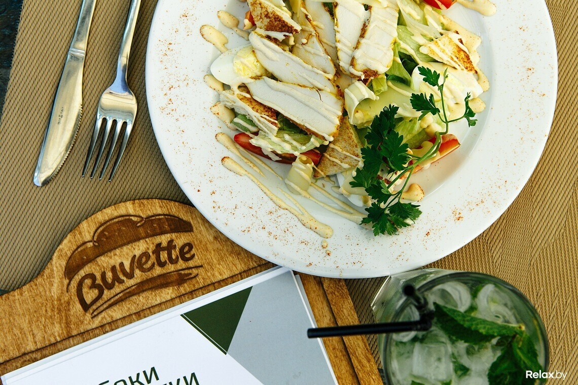 В Buvette значительно расширили и усовершенствовали меню. Раньше в заведении в стиле французского буфета-пекарни предлагали сэндвичи и бургеры. Теперь кафе специализируется на европейской кухне: в меню появились разного рода закуски, салаты, стейки и гриль-блюда; есть, конечно, авторские сэндвичи, бургеры и фирменные десерты.