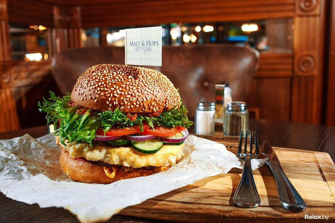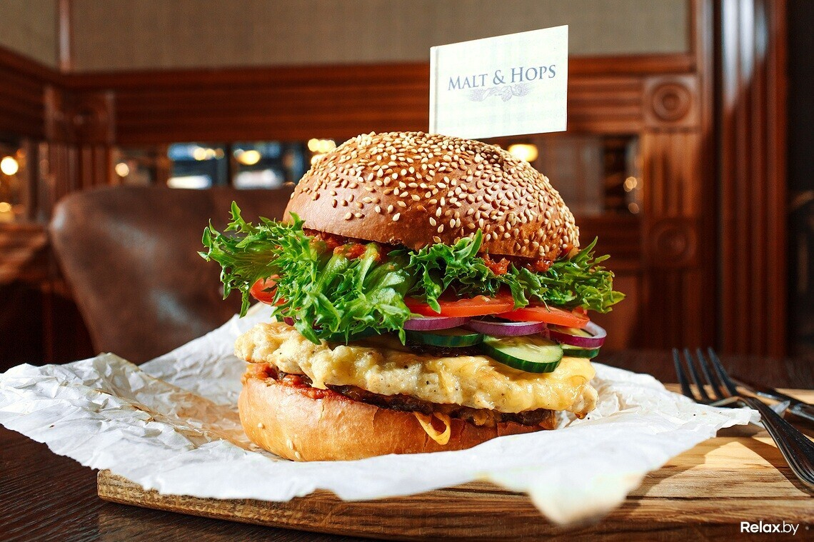 Столичный паб Malt & Hops 23 и 24 июня в честь собственного дня рождения (заведению исполнилось 3 года) будет предлагать гостям внушительный бургер XXL весом в 1 килограмм.