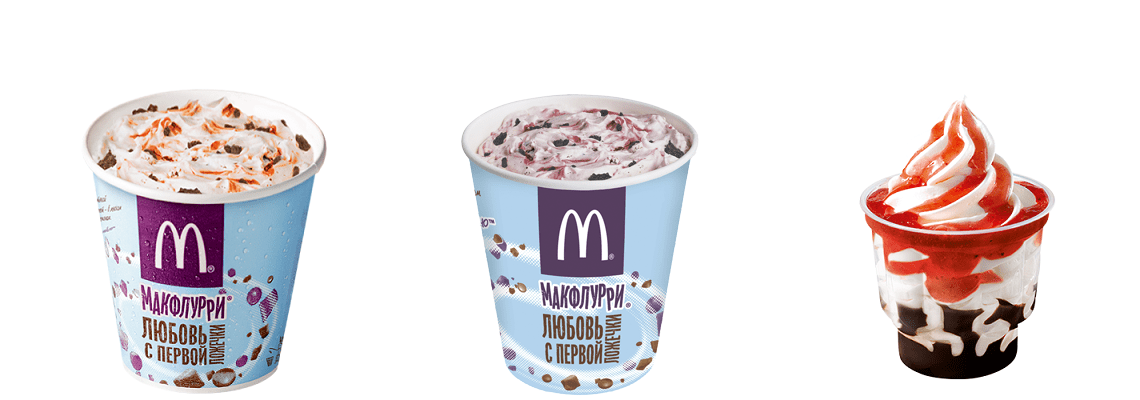 В мороженое «МакФлурри» теперь предлагают добавить персиковый или клубничный топпинг, а в «МакСанди Дуо» — сразу два на ваш вкус.