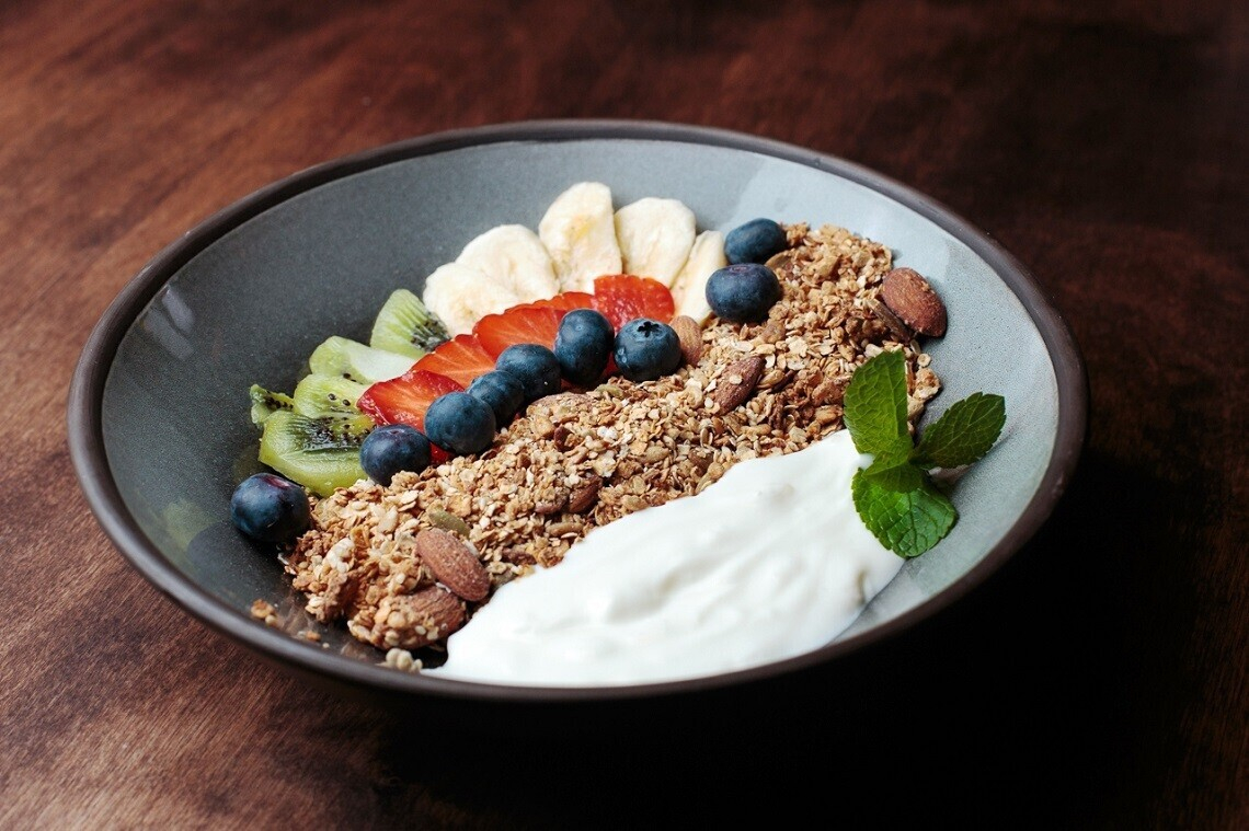 Гранола с йогуртом и фруктами