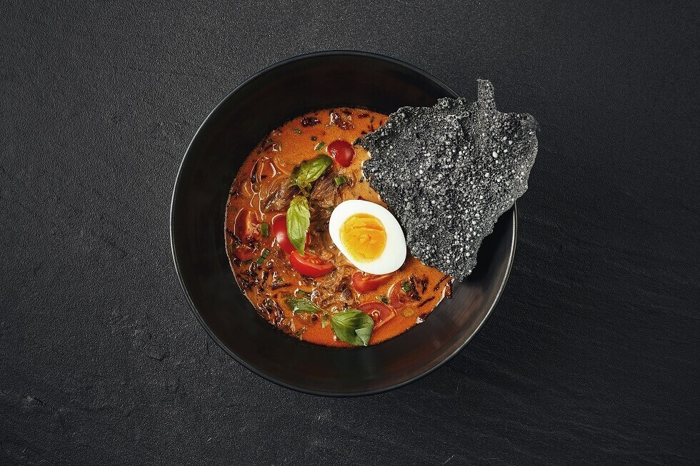 Пряный сладковатый суп родом из Индонезии и Малайзии. Существует множество рецептов этого паназиатского блюда. Его готовят из рыбы, морепродуктов и креветок. К слову, лакса заняла 7 место среди 50 самых вкусных блюд в рейтинге, составленном CNN Go. Рэнди предлагает своим гостям попробовать лаксу с говядиной, томатами, яйцом, рисовой лапшой и черными чипсами.