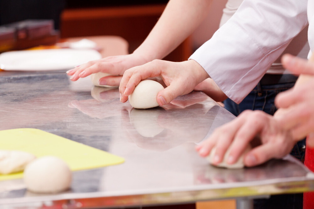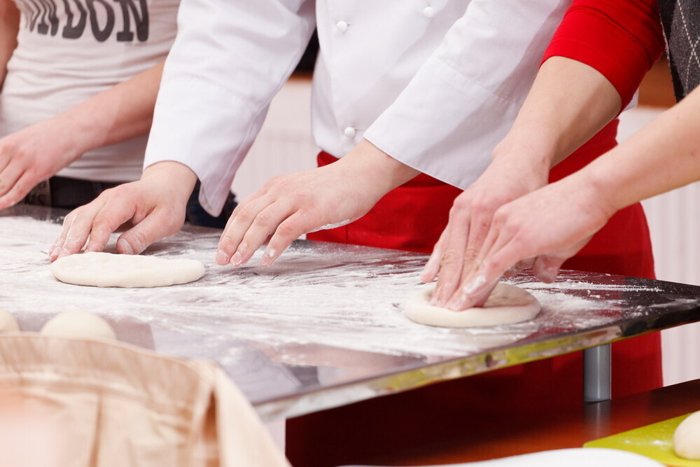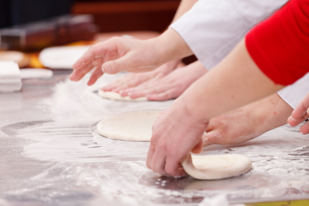 • Классическое тесто для итальянской пиццы замешивается из особенной муки, которая представляет собой смесь обыкновенной муки и муки дурум (из твердой пшеницы) оливкового масла, воды, дрожжей, сахара и соли. Это тесто непременно замешивается вручную и затем раскатывается в тоненькую лепешку. Толщина мучного слоя не должна превышать 0,5 см.