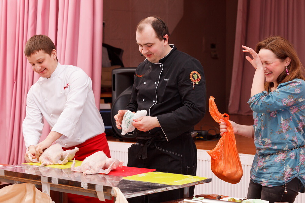 Михаил совместно с Ташей Лопатенко, выступили в уникальном для Беларуси жанре "поварского спектакля": на суд зрителей были представлены массаж курицы и художественная чистка чеснока.