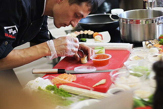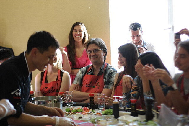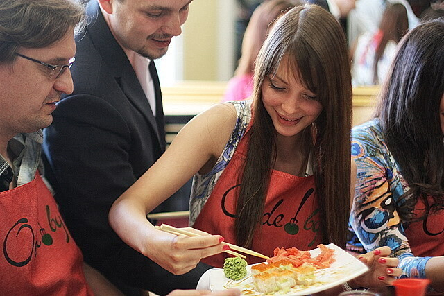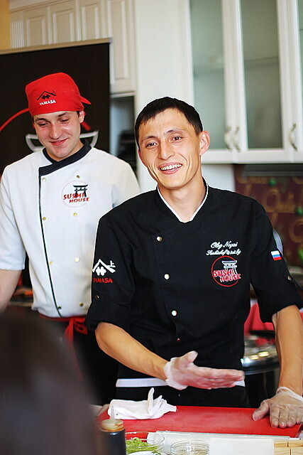 В одну из суббот июня, которая этим прохладным летом выдалась на удивление жаркой, в кулинарной школе-студии «Oede.by» собрались любители японской кухни. Здесь прошла презентация обновленного меню кафе «SushiHouse» в исполнении шеф-повара Ногай Олега. Среди гостей были и представитель посольства Страны восходящего солнца, и белорусские медийные персоны. Мастер удивлял разнообразными ассорти из суши, сашими, роллов, а также лёгкими японскими салатами. Дополнили всё это пиршество удивительные истории преподавателя Белгосуниверситета господина Акиры Фурасава. Он поведал всем собравшимся об уникальности японской нации и особенностях местного этикета, а также провёл настоящую чайную церемонию.