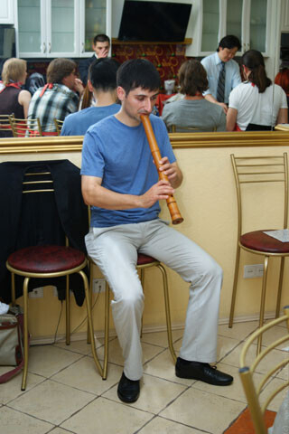 В завершении мастер-класса Акира Фурусава провёл для гостей настоящую японскую чайную церемонию. Это особое действо со своей философией и этикетом: благодаря простым действиям человеку доступен путь духовного совершенствования. Прошла церемония под чарующие звуки японской флейты в исполнении музыканта Сергея Авдеенко.