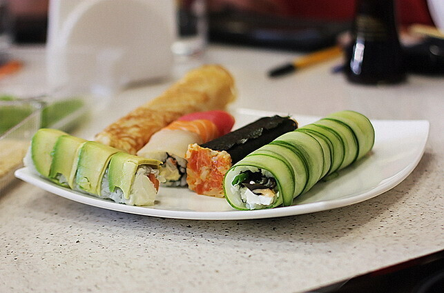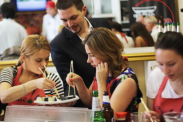Суши вошли в нашу жизнь настолько плотно, что порой кажется, что по степени популярности сегодня японская кухня в нашей стране превосходит родную белорусскую. Сашими с доставкой заказывают себе на обед уставшие офисные работники, роллы без труда можно купить в любом мало-мальски крупном магазине (о качестве сейчас ни слова), только ленивый не пытался завернуть рис в нори в домашних условиях. Сами японцы вряд ли узнали бы родные блюда. Но только не в кафе «SushiHouse»! Сюда смело можно вести делегацию из Страны восходящего солнца. В этом заведении очень трепетно относятся к соблюдению всех канонов при приготовлении японских блюд и особо следят за качеством продуктов. В этом убедились участники мастер-класса, которые также отметили уникальность и разнообразие обновлённого меню «SushiHouse». Оно включает в себя более 180 японских блюд и напитков.