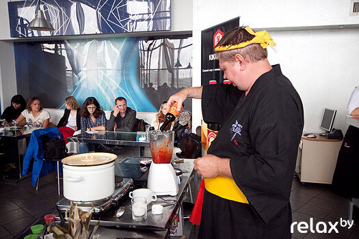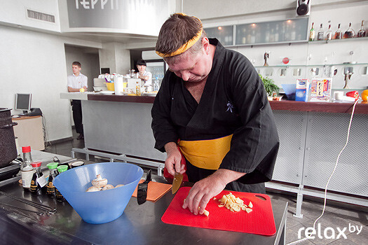 Ведущий кулинарных шоу, шеф-повар московского ресторана «Нэцке», член гильдии «шефов» России, преподаватель школы гастрономов…. Кому, как не ему делиться всеми тонкостями восточной кухни? В течение 4 часов Николай Чернышев удерживал внимание более 60 шеф-поваров Минска, пришедших на его мастер-класс! А поучиться действительно есть чему: свои кулинарные умения Николай оттачивал в Японии, где жил и работал 6 лет. Вместе с многочисленными гостями портал relax.by внимательно наблюдал за тем, как создаются вкусные шедевры.