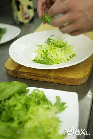 1. Рвем свежие молодые побеги салата руками, руколу кладем целиком.