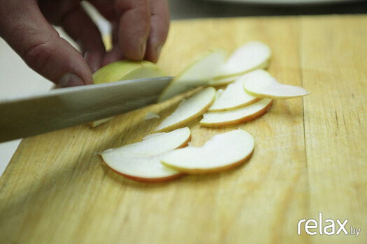 4. Яблоко нарезаем тонкими дольками.