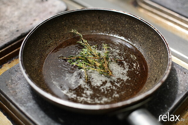 5. Обжариваем веточку тимьяна на оливковом масле.