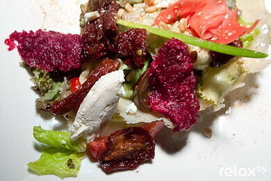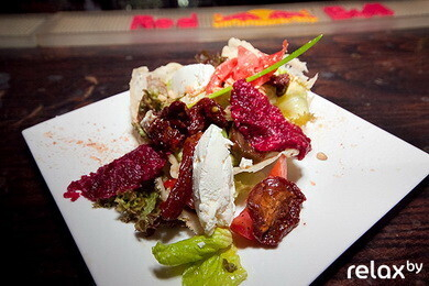Особенность блюда: яркая вкусовая вариация традиционного! Последний штрих — динамично выложенные в микс-салат кусочки «Cremette». Это блюдо можно показаться легким намеком на традиционный европейский «Греческий» салат (сочетание овощей и сыра). Однако по своему вкусу и подаче эти блюда совершенно противоположны!