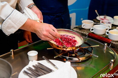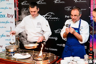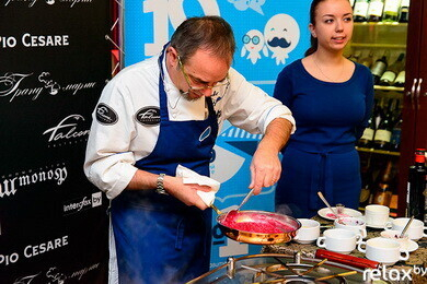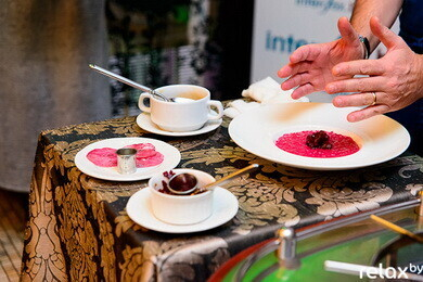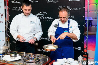 В настоящее время ни в России, ни в Украине, ни в иных странах-соседках нет ни одного шеф-повара, который был бы обладателем хотя бы одной звезды «Мишлен»! Джузеппе Занотти понадобилось полгода на то, чтобы добиться и организовать приезд Марко в Минск. Масштаб события бесспорен, как и бесспорно изысканное в своем вкусе блюдо, которое маэстро представил на своем мастер-классе — «Ризотто со свеклой, редукцией из курицы, фондю из сыра «Кастельманьо».